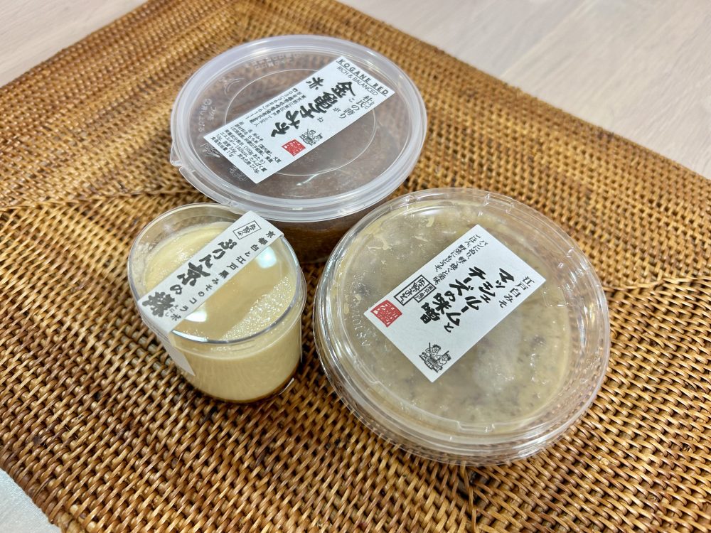 お土産には、イートインで食べたおかず味噌の「チーズとマッシュルームの味噌」と、コクがあって美味しかった「味噌ぷりん」。それと金亀子赤みそを購入して、大満足の味噌ツアーでした。